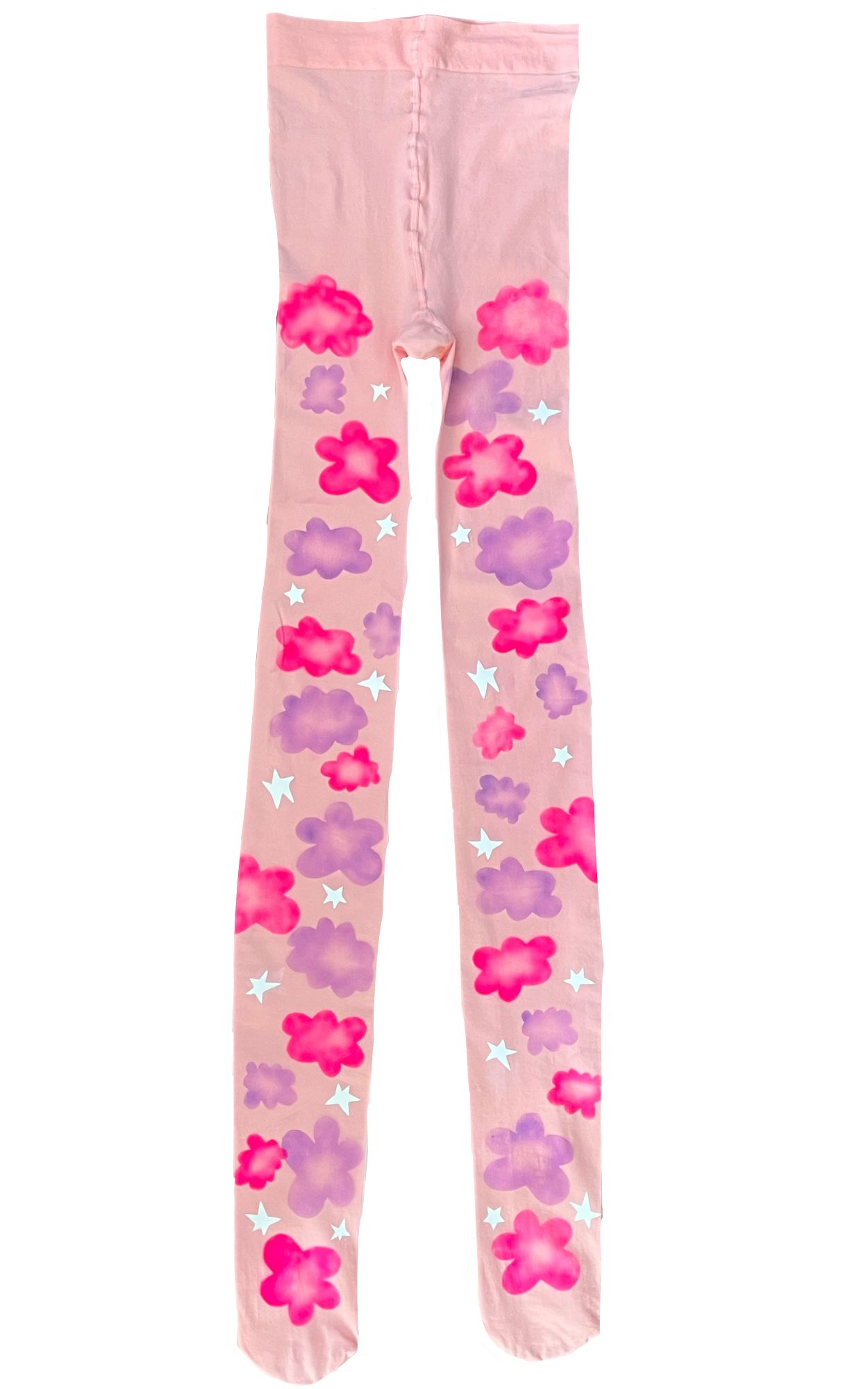 Straight from our diaries to your closet. Each pair of our Doodle Tights is airbrushed by hand and totally unique using hand cut stencils in NYC and vinyl star appliques. These are a great statement piece to add a handmade touch to any outfit.